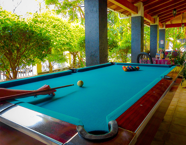 Rete a su familia y amigos a una partida de billar en nuestra mesa italiana. Solicite los tacos y bolas en recepción y elija entre 8-ball o 9-ball.